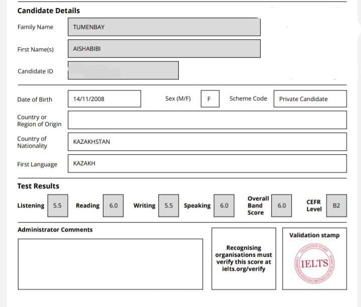 IELTS тестін мектебіміздің 4 оқушысы тапсырып, жоғары нәтиже көрсетті!